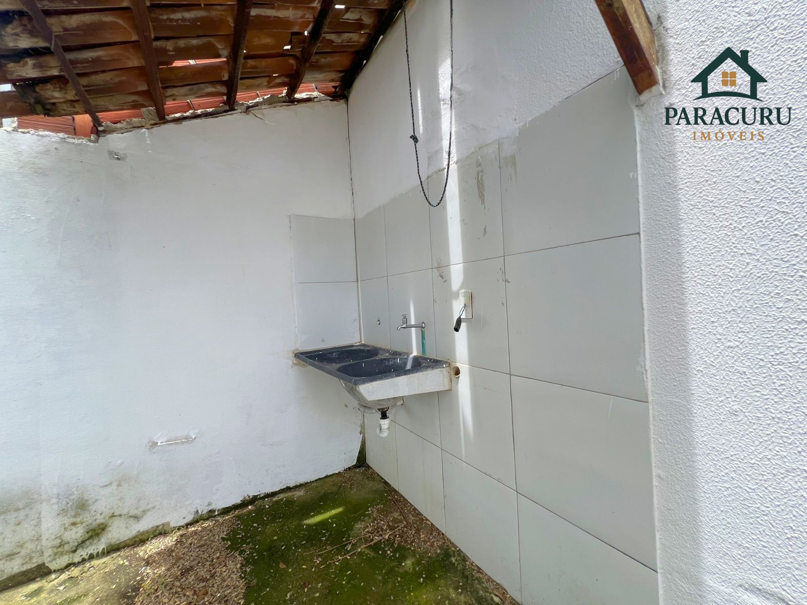 Lavanderia coberta e quintal.